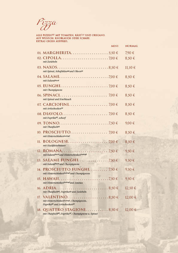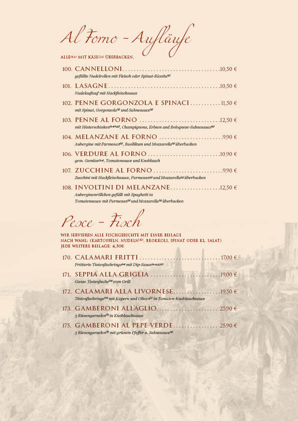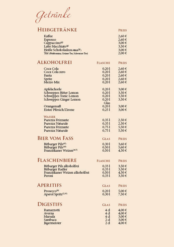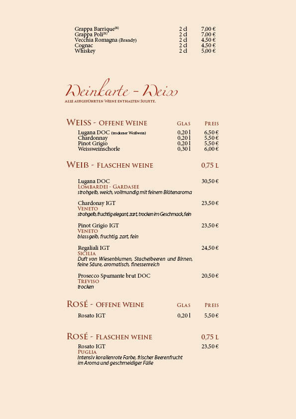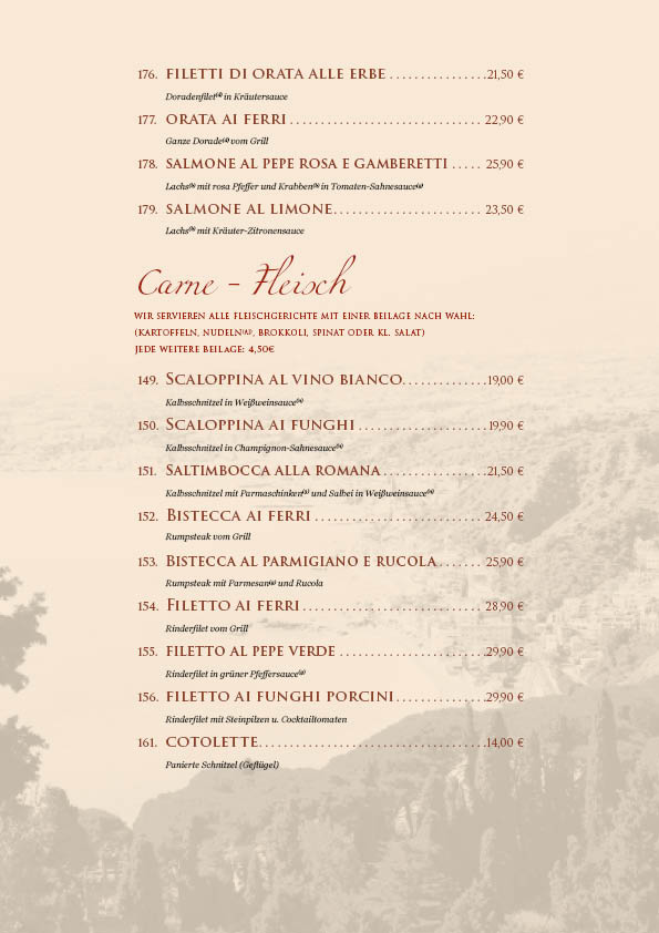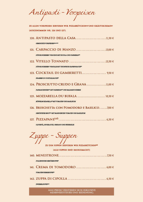 Unsere Speisekarte wurde überarbeitet, bitte beachten Sie die Preisänderungen.
