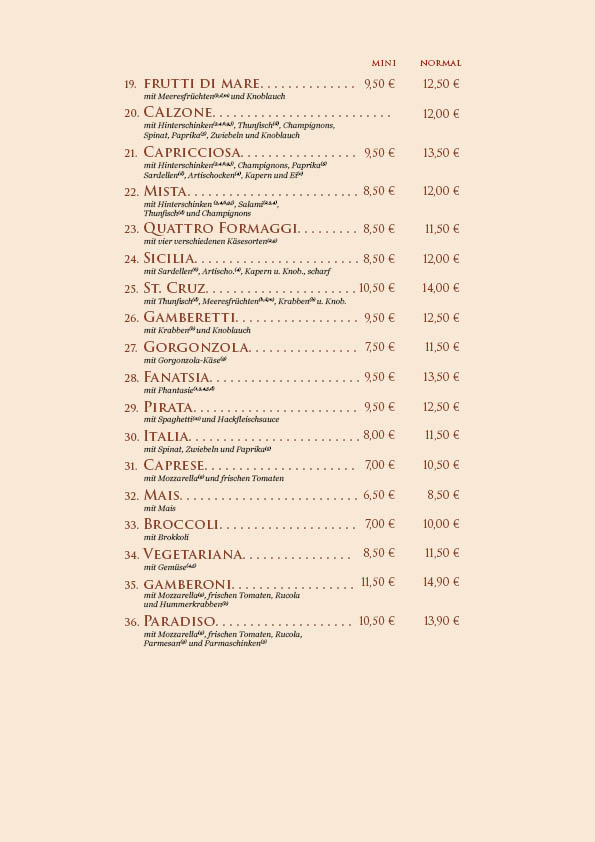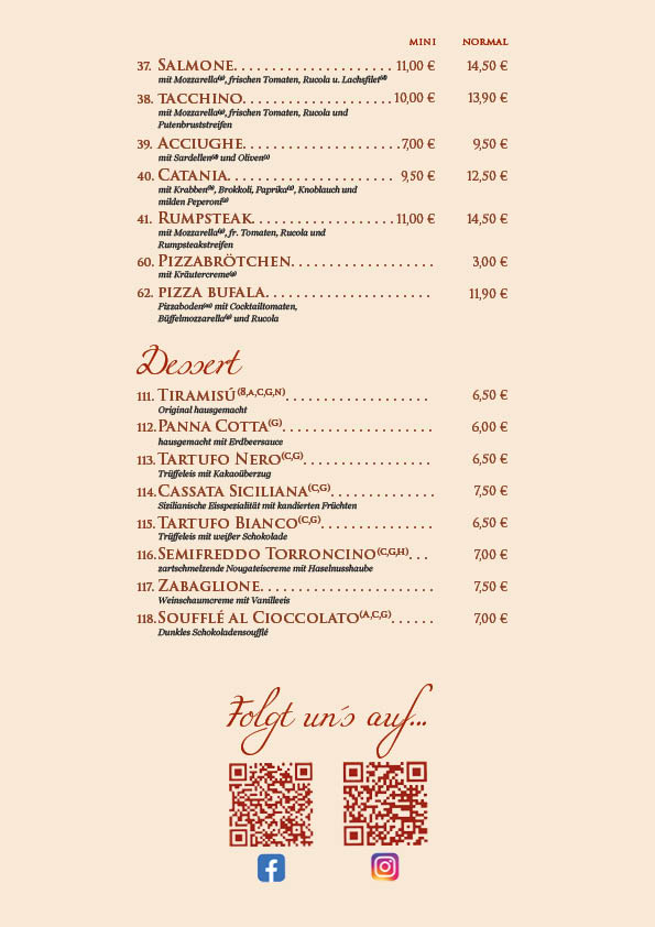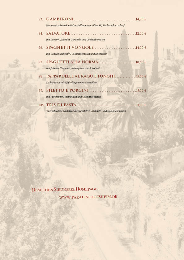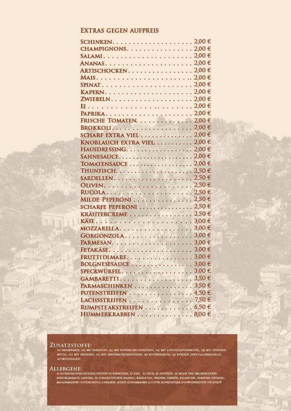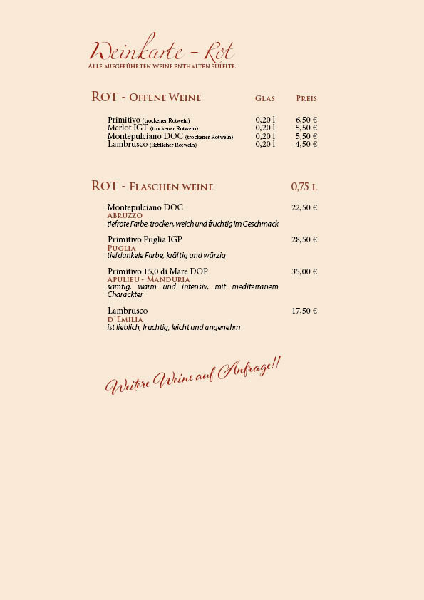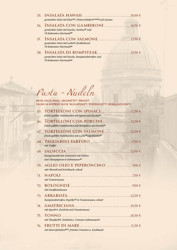 Unsere Speisekarte wurde überarbeitet, bitte beachten Sie die Preisänderungen.
